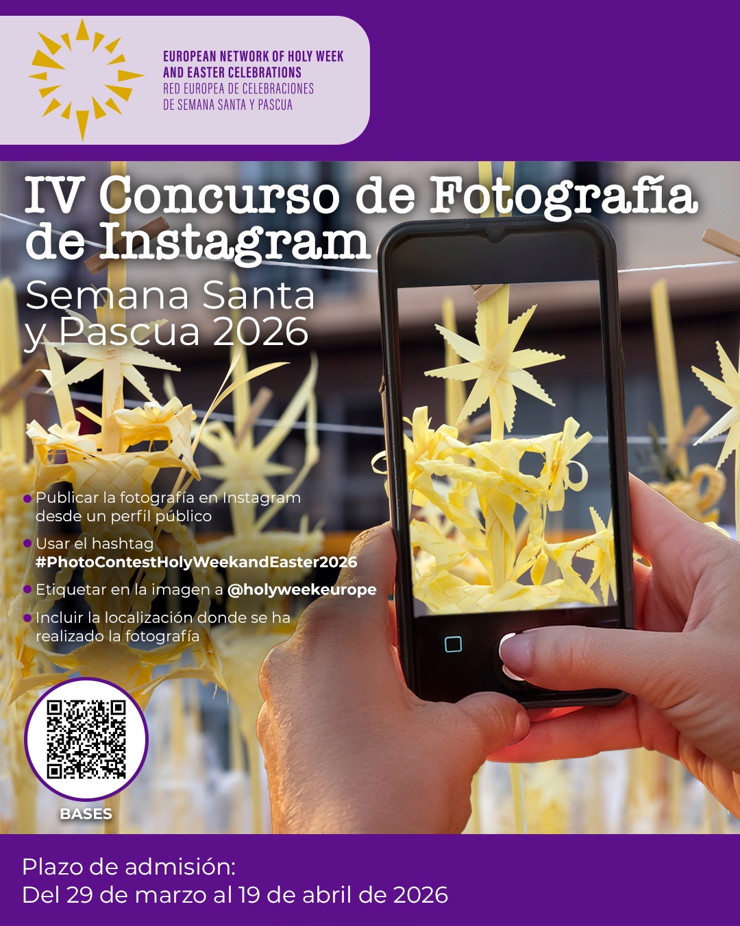 La Red Europea de Celebraciones de Semana Santa y Pascua organiza el Concurso de Fotografía de Instagram Semana Santa, con el fin de que los concursantes muestren, desde el prisma fotográfico, los detalles, tradiciones singulares y vivencias de esta celebración en los diversos municipios que forman parte de esta Red Europea.